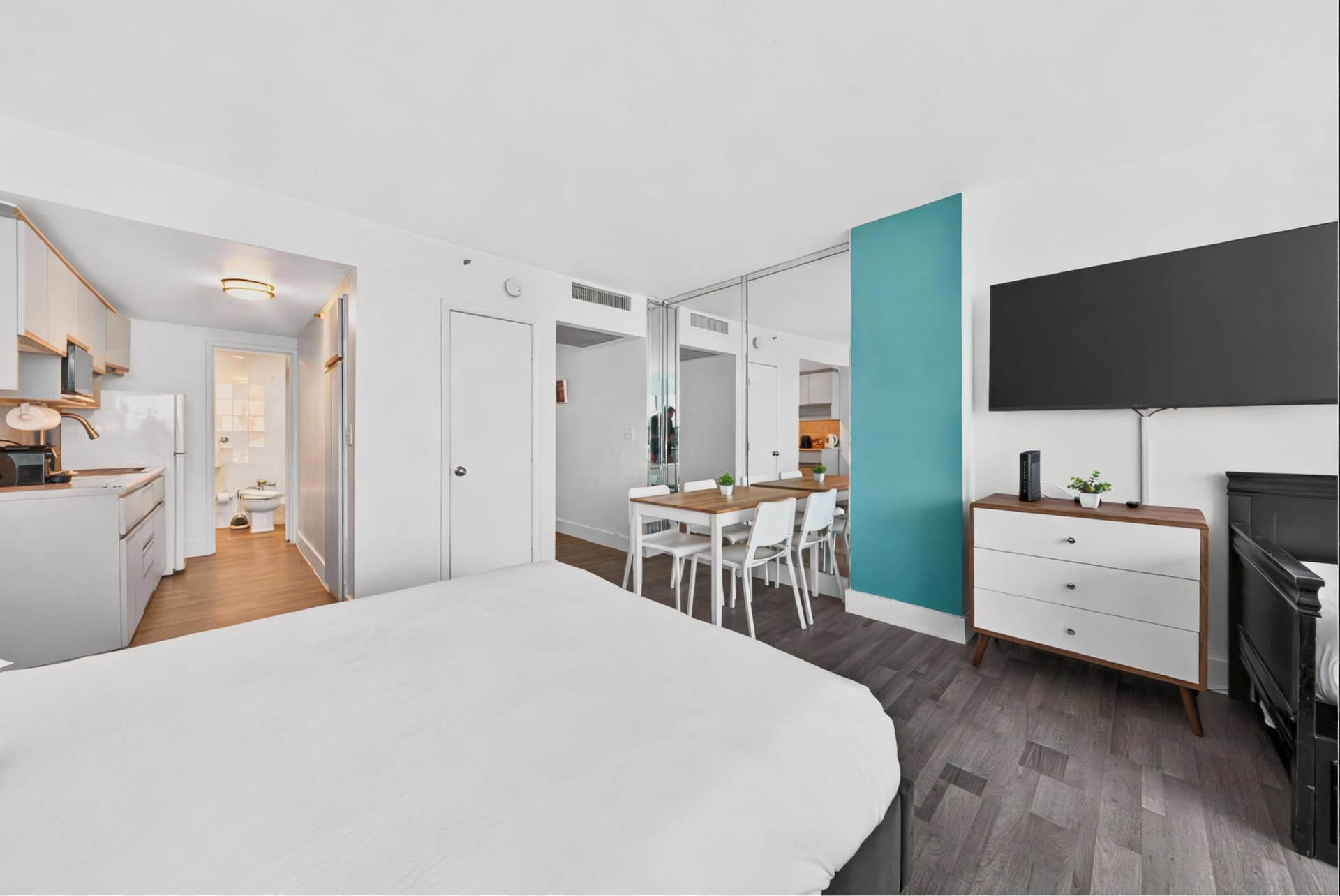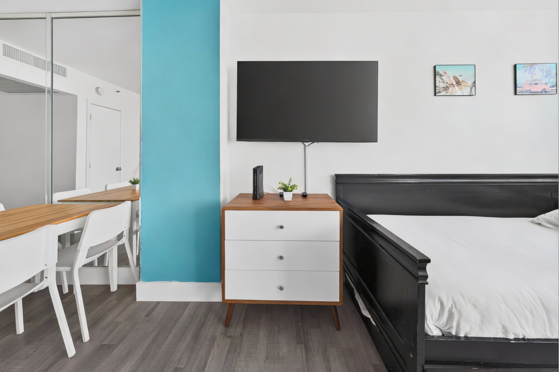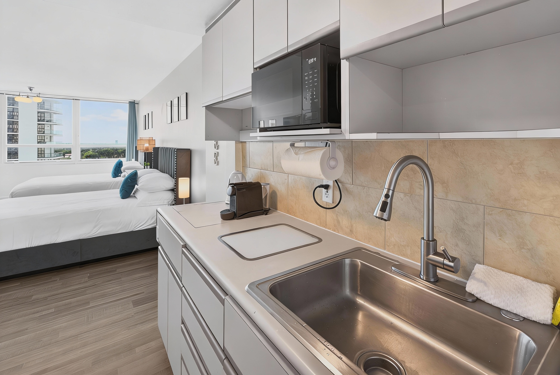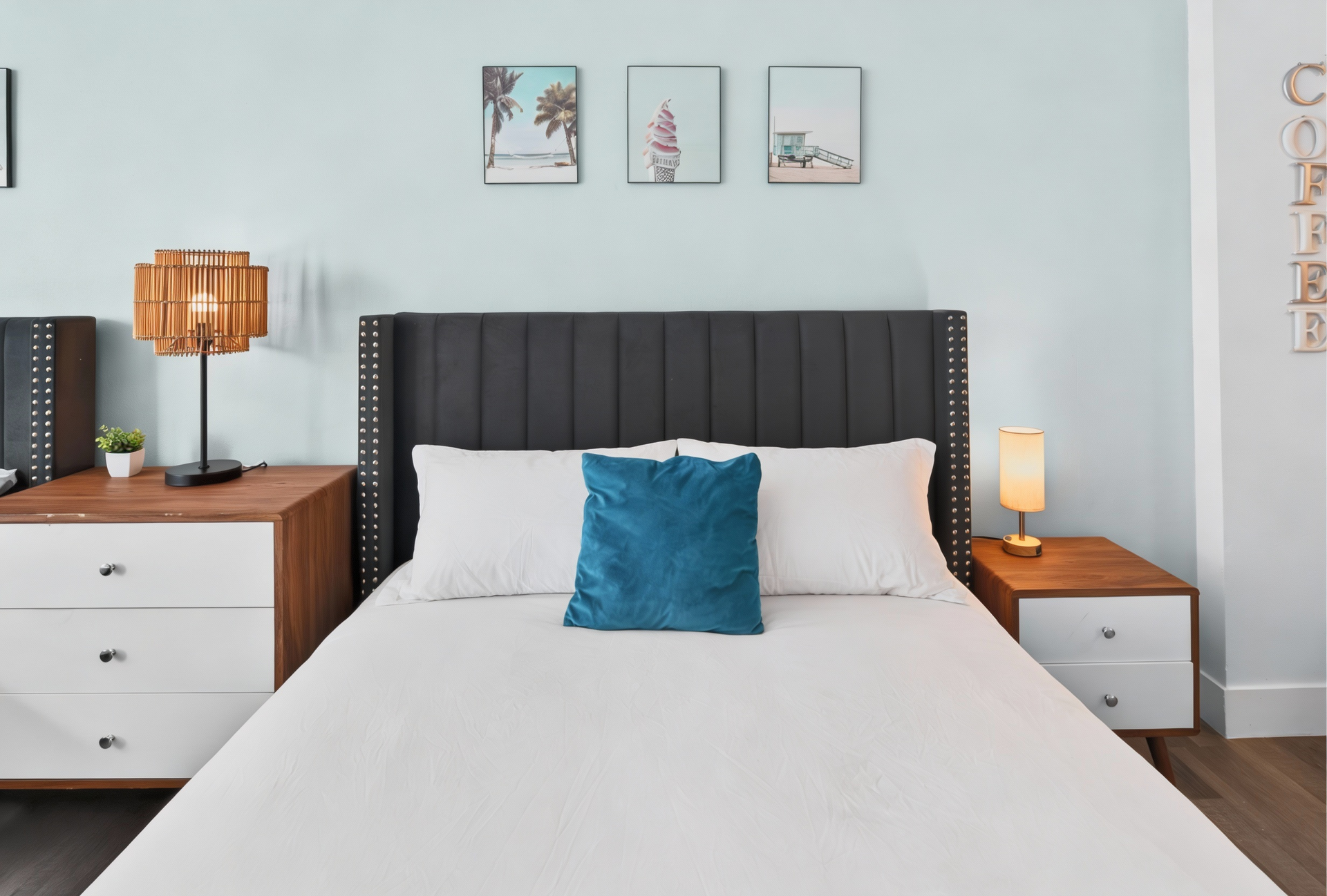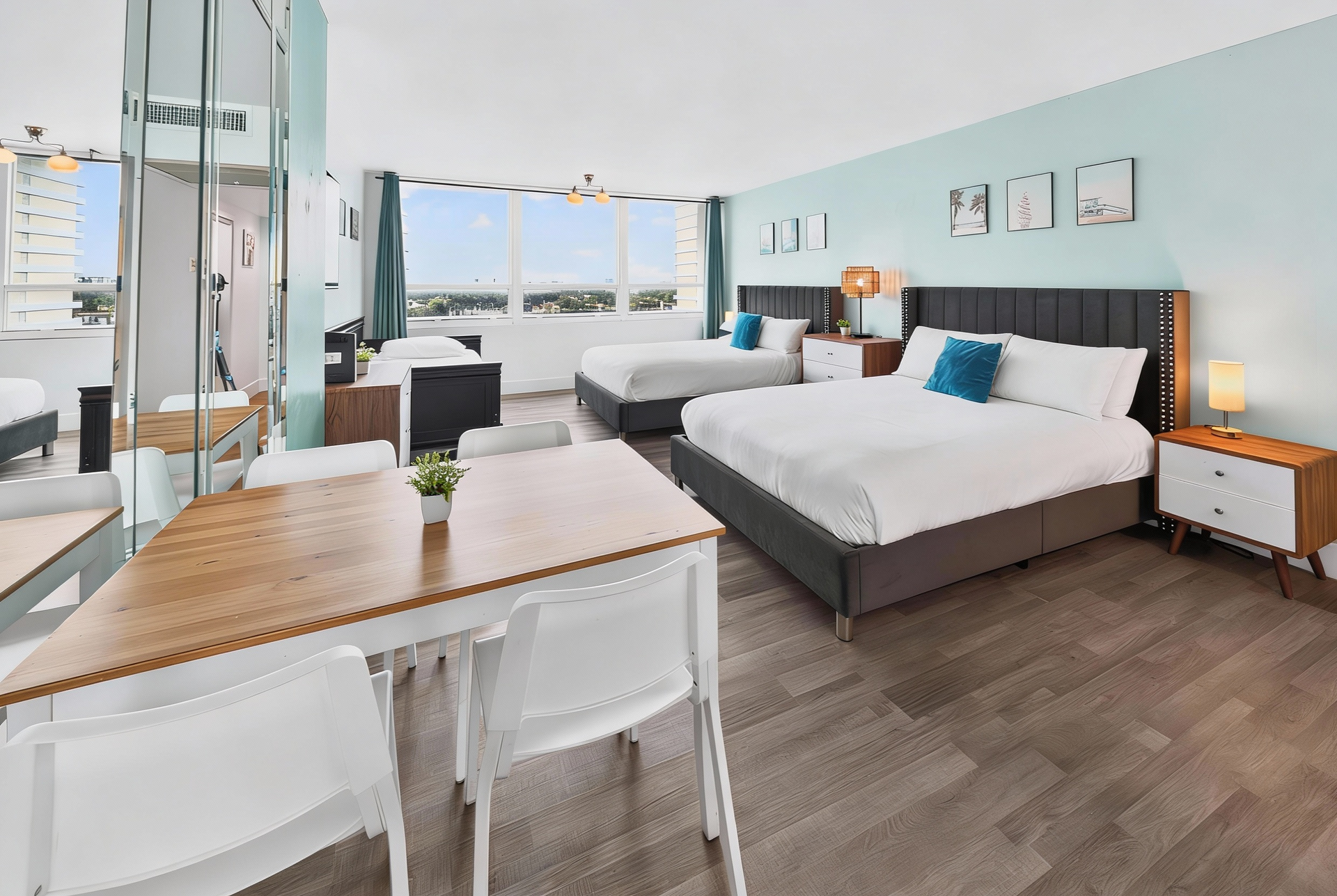 Beds: 1 King bed in the 1st bedroom, 2 Queen beds in the 2nd and Sofa bed in the living room