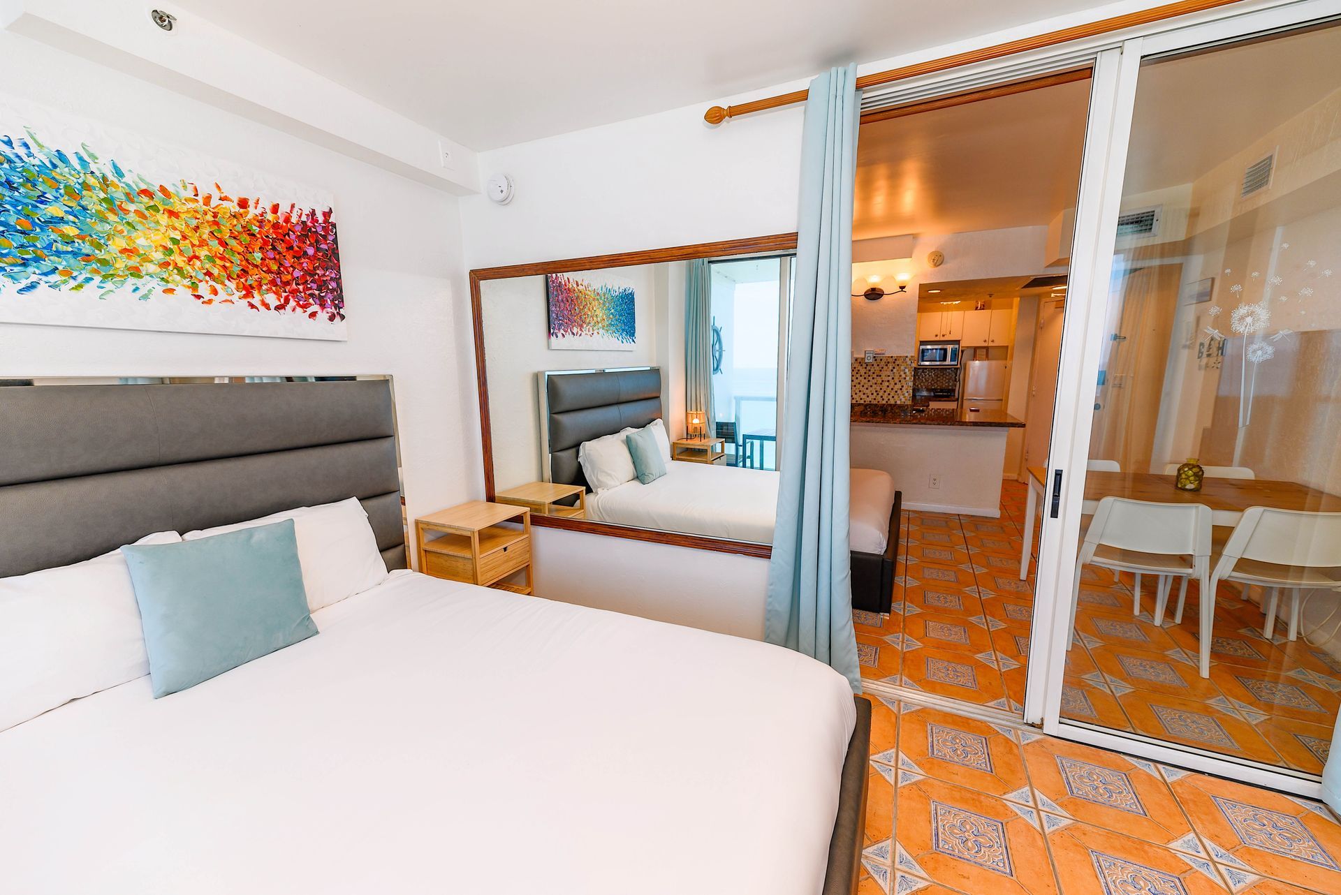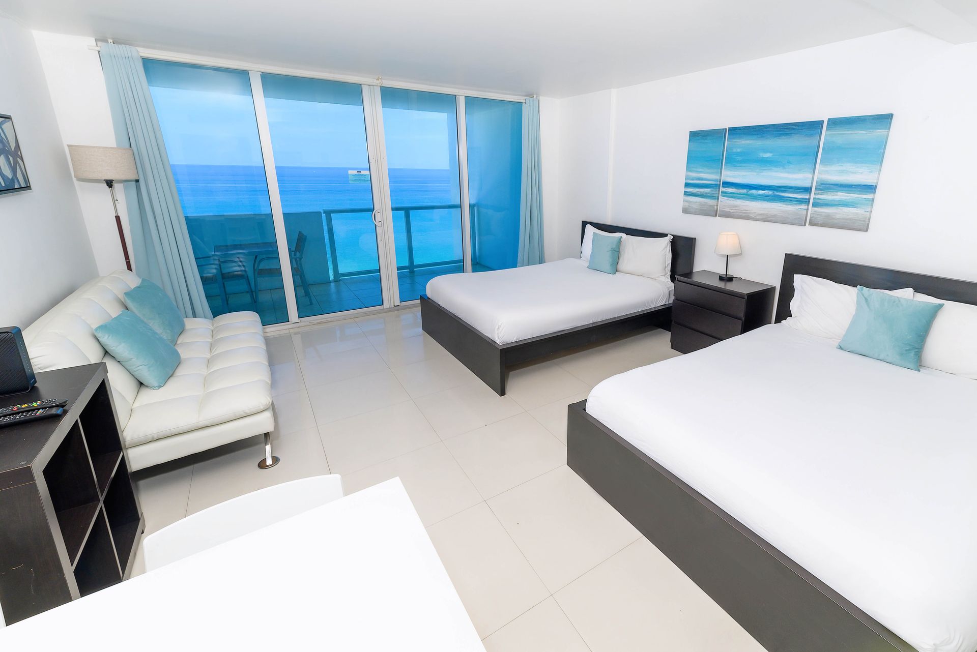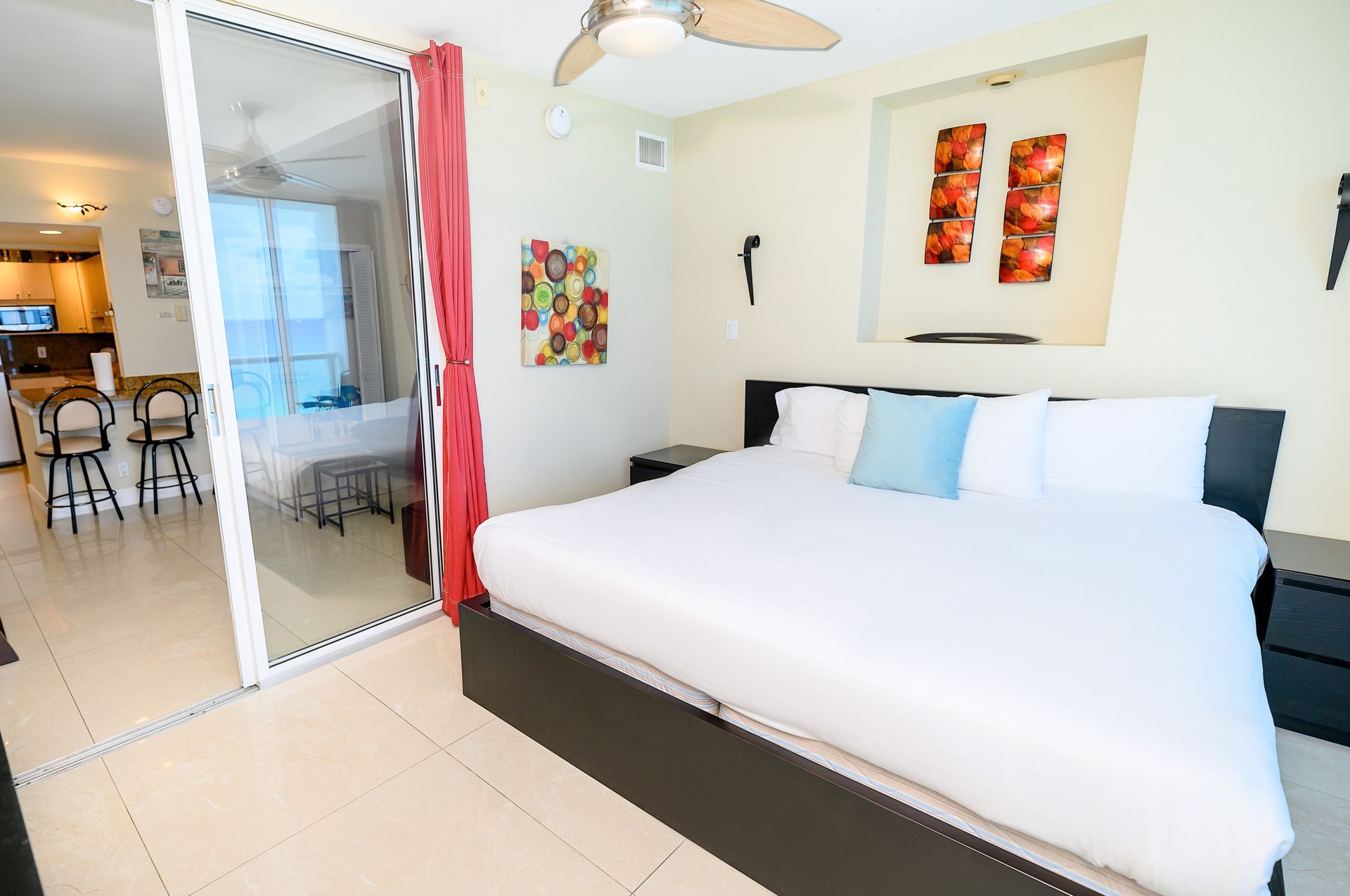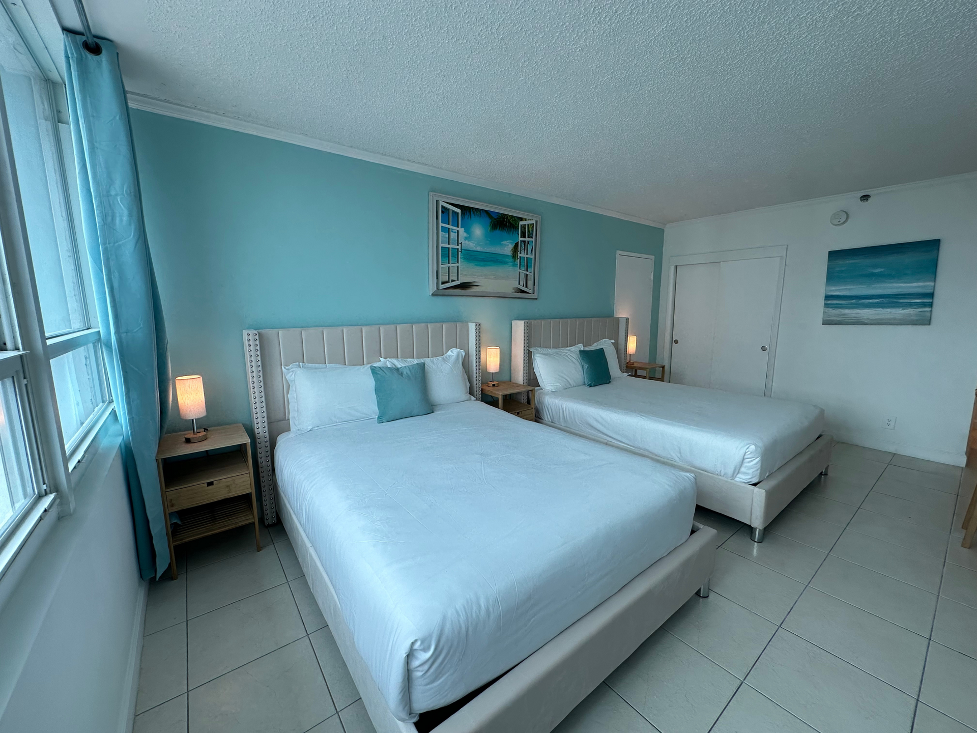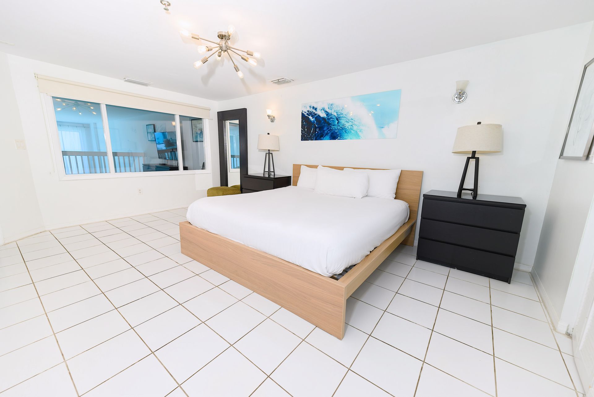 Camas: 1 cama King en el primer dormitorio, 2 camas individuales en el área del loft y 2 camas individuales en el dormitorio de abajo y balcón a la playa.