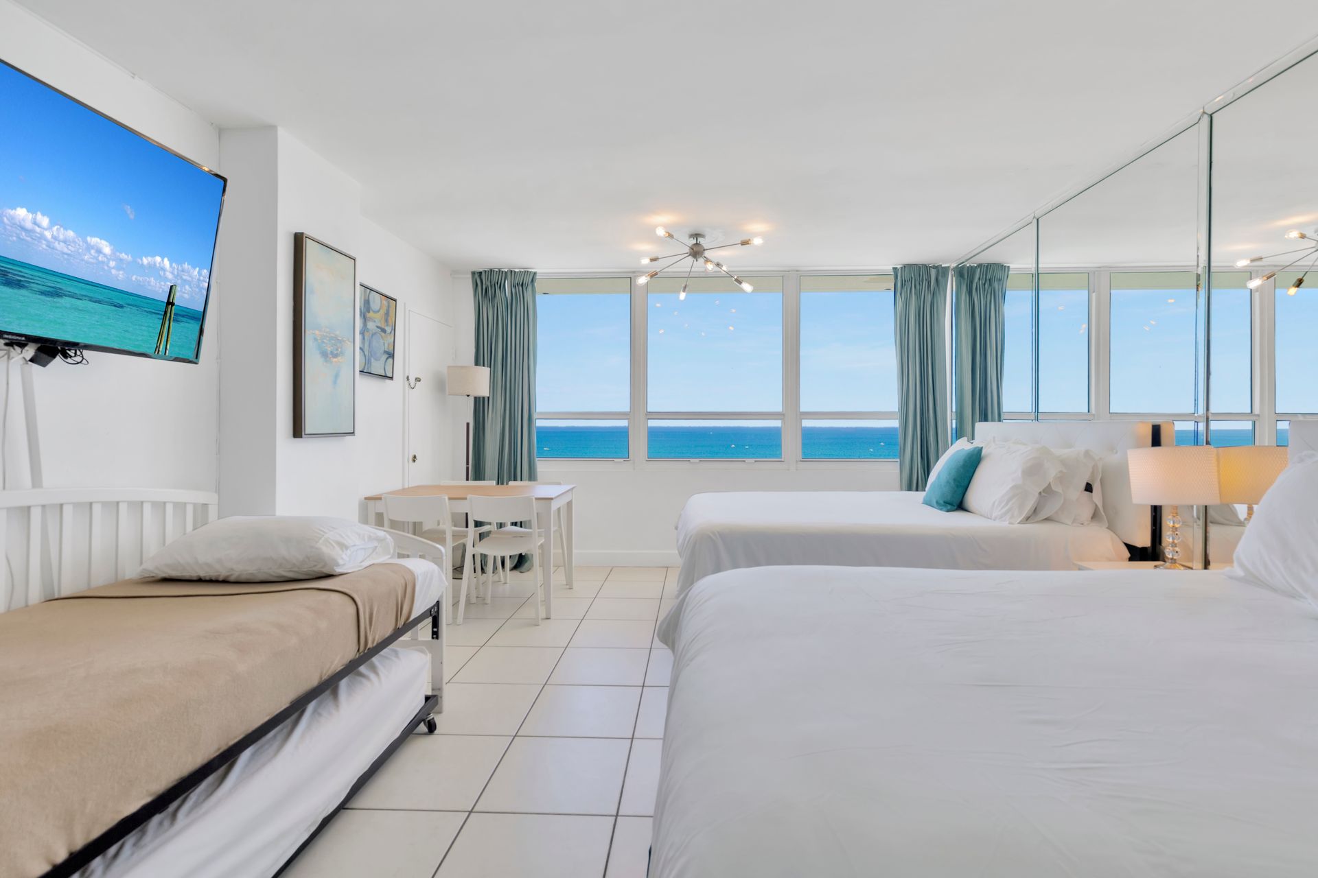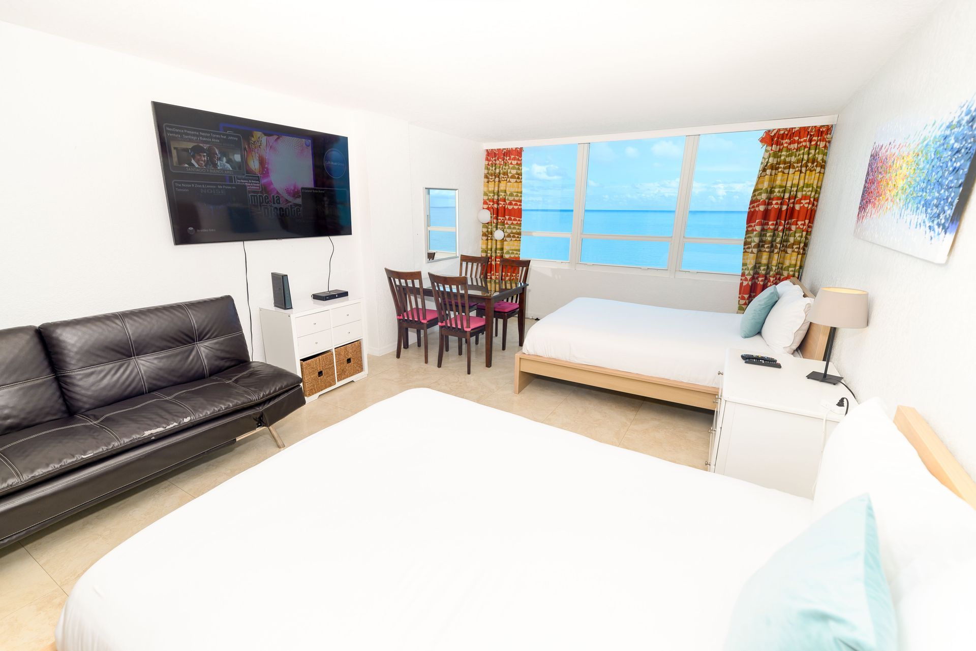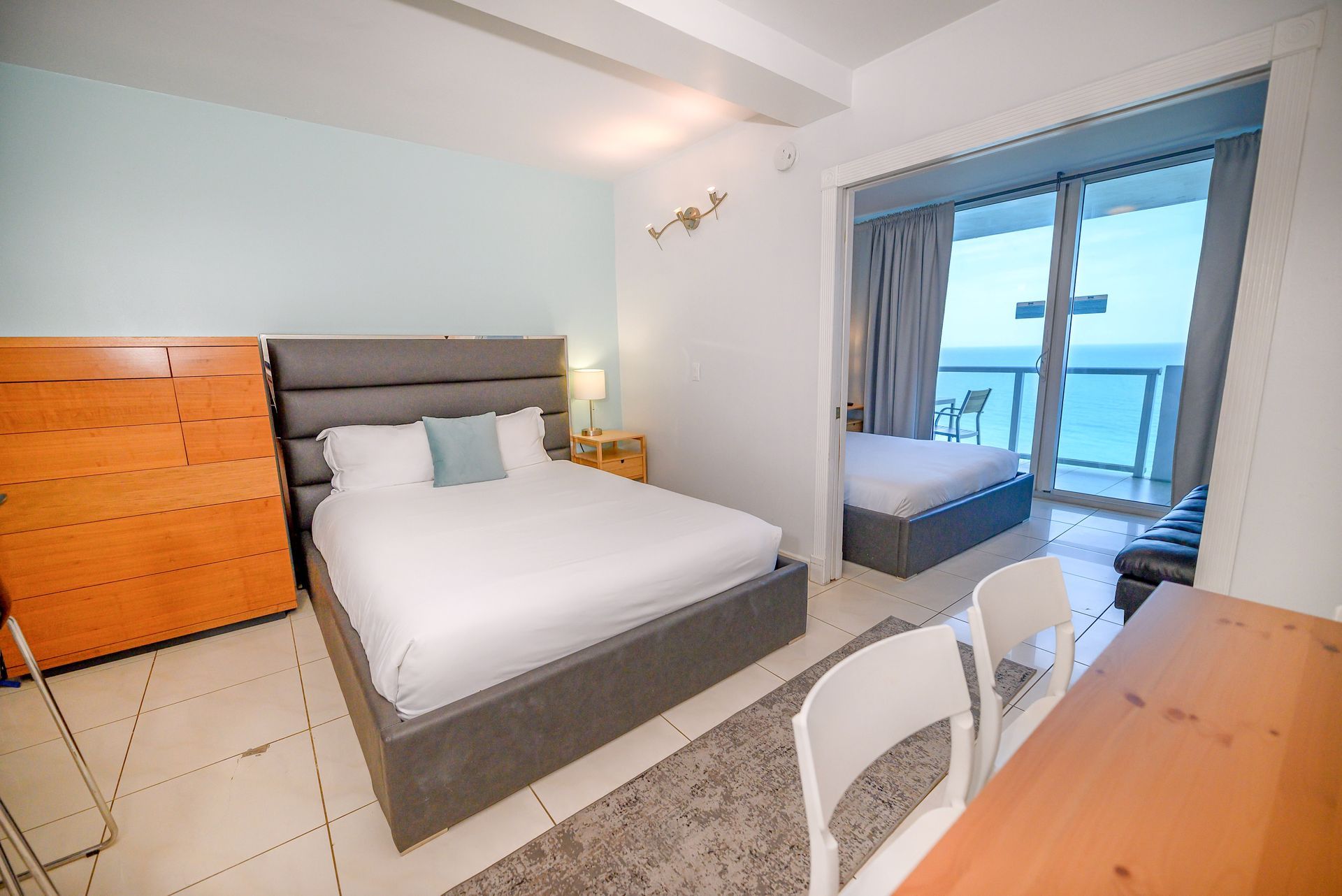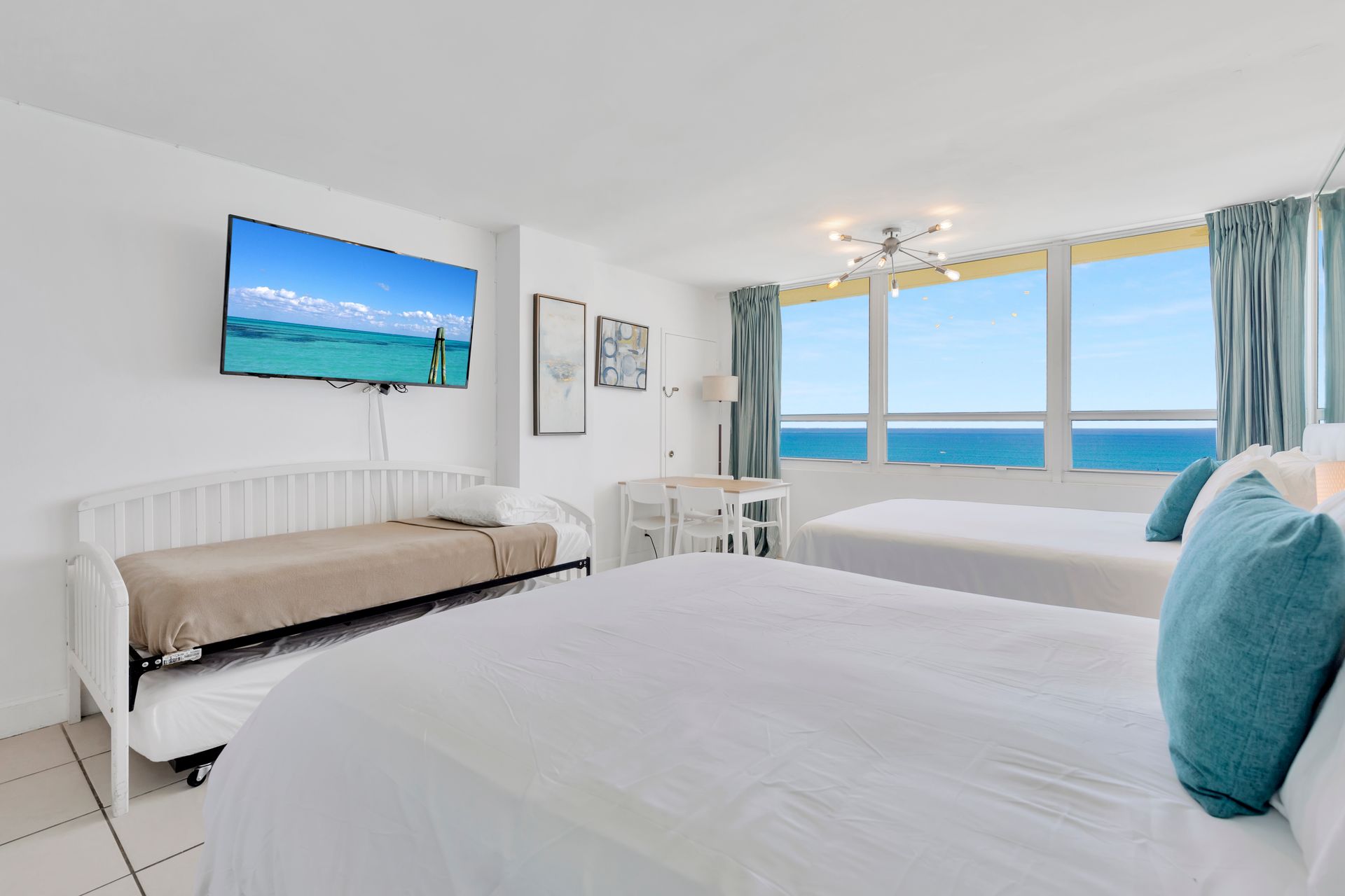 Camas: 1 cama King en el primer dormitorio, 2 camas individuales en el área del loft y 2 camas individuales en el dormitorio de abajo y balcón a la playa.