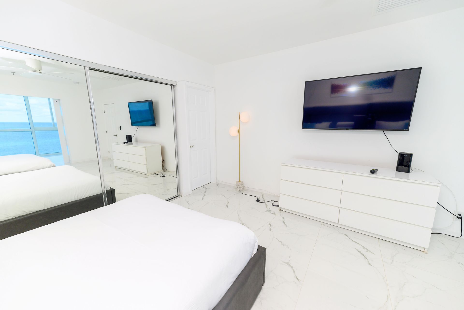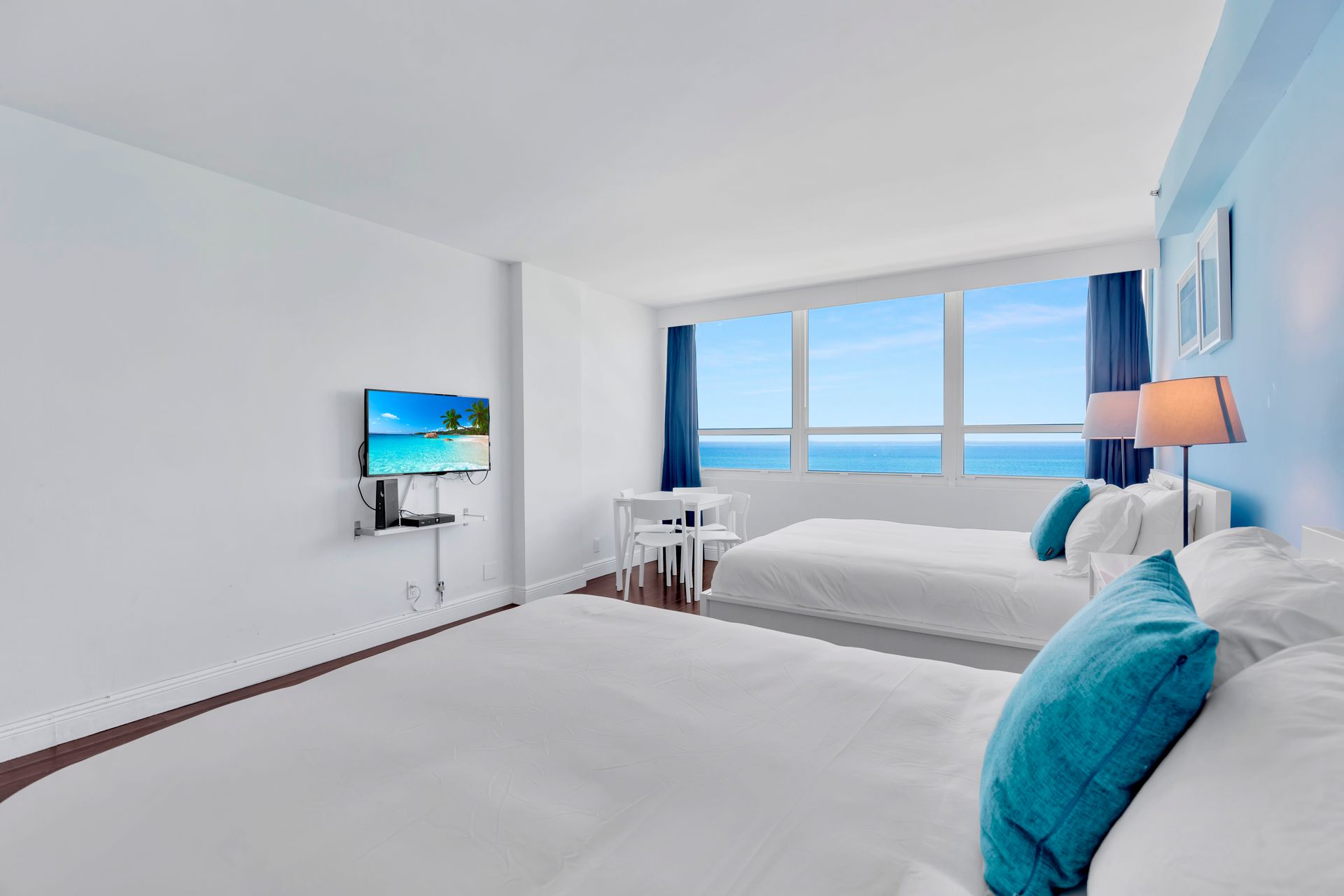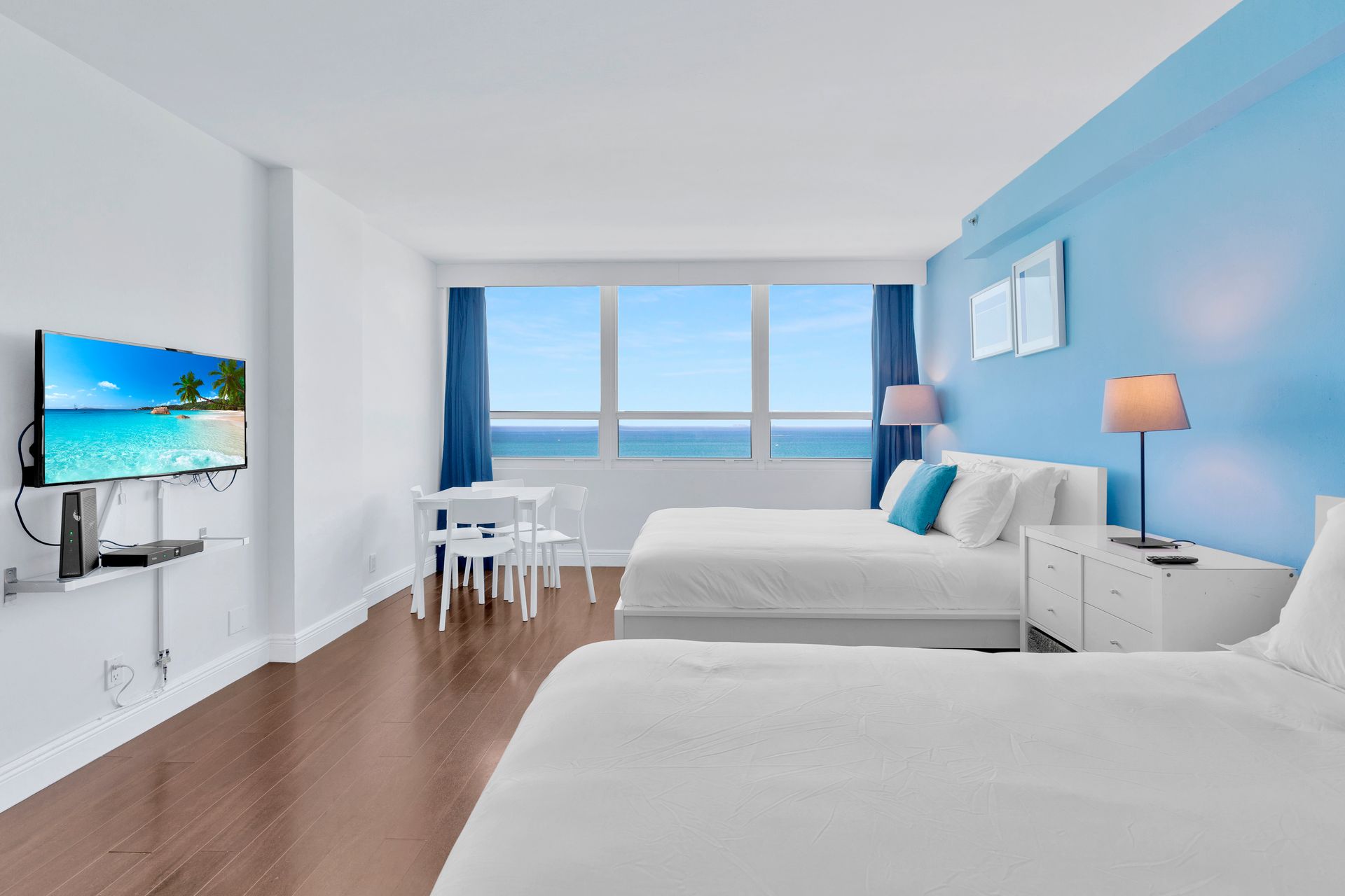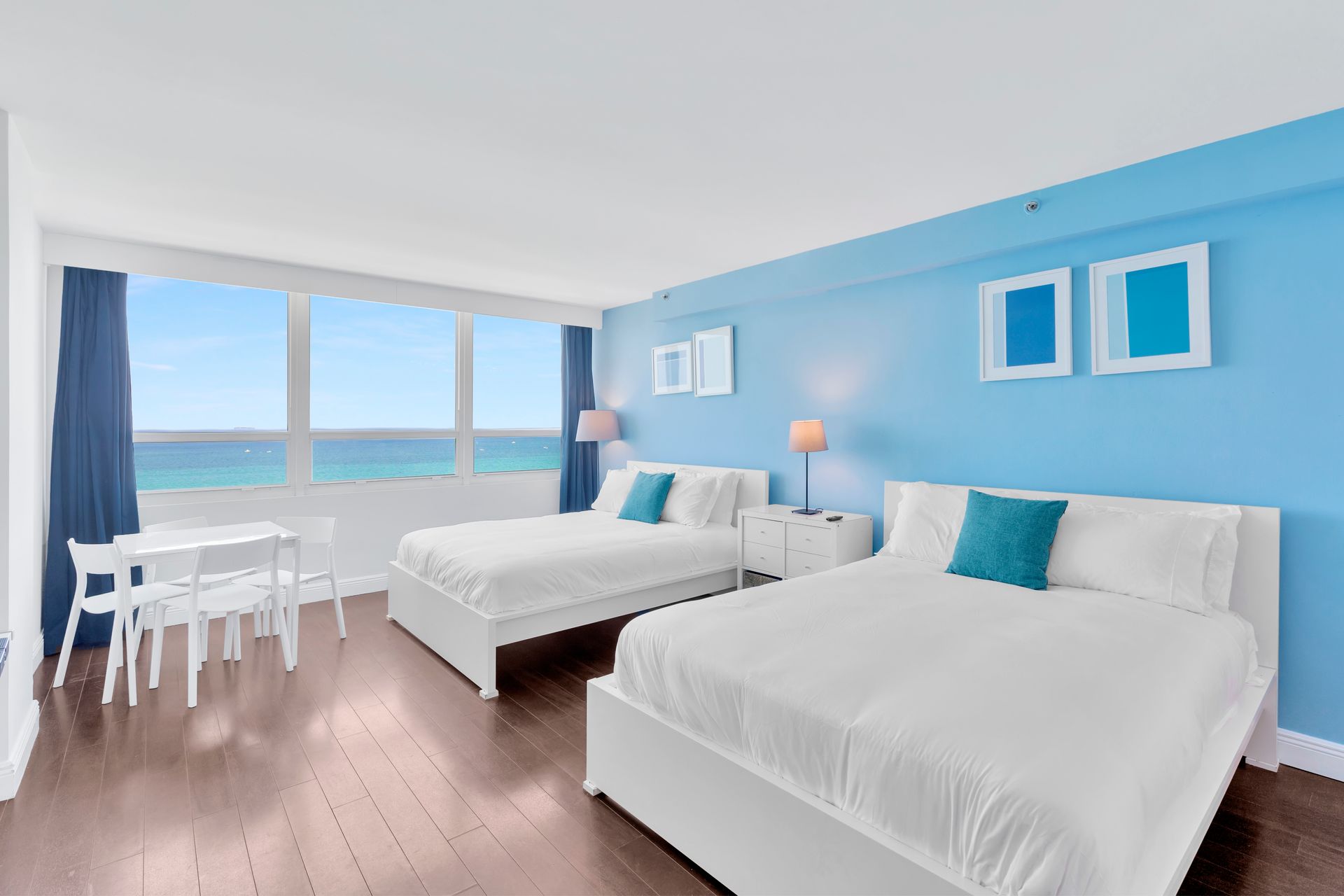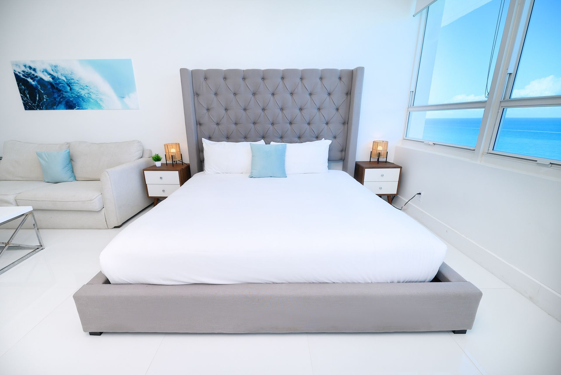 Camas: 1 cama King en el primer dormitorio, 2 camas individuales en el área del loft y 2 camas individuales en el dormitorio de abajo y balcón a la playa.
