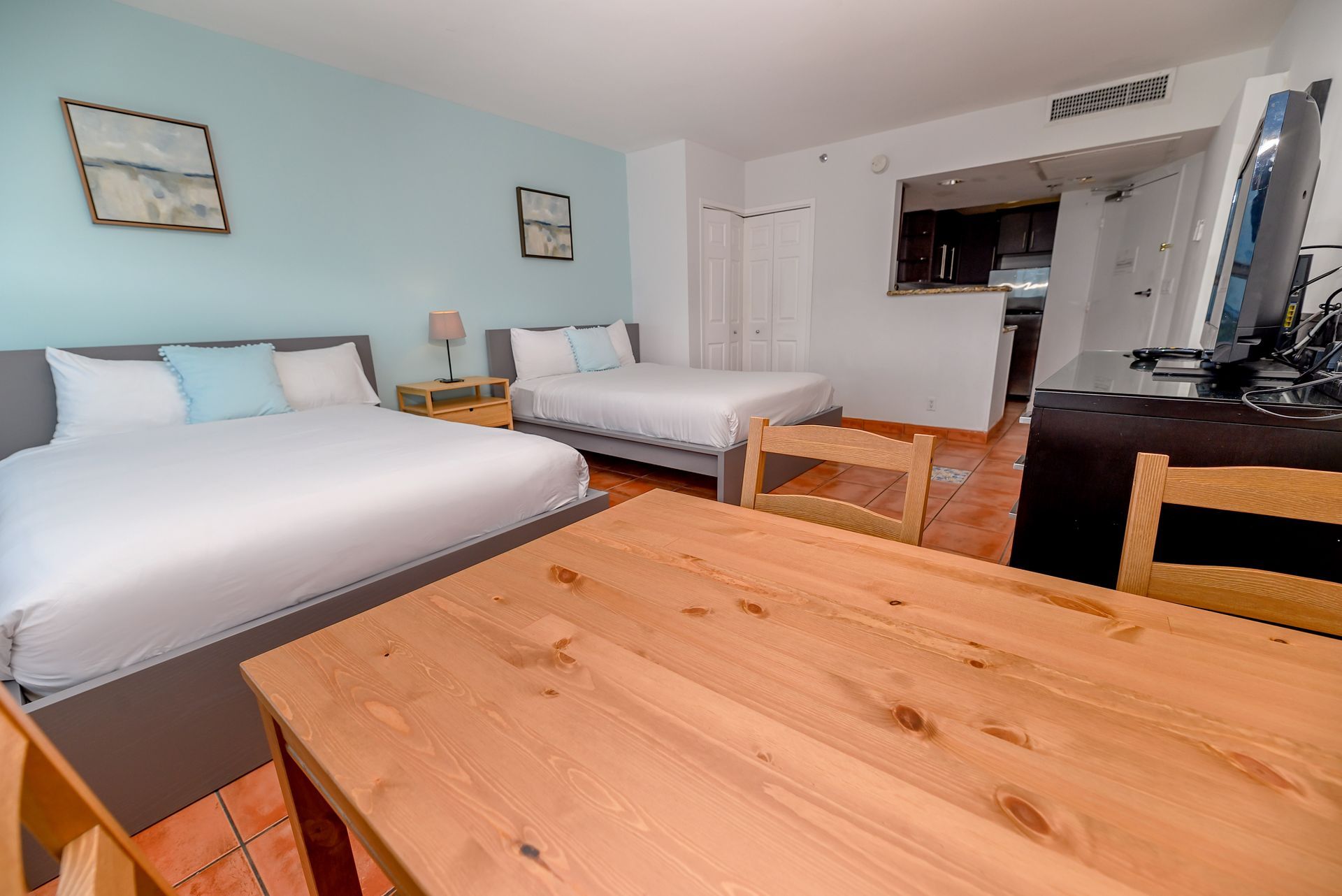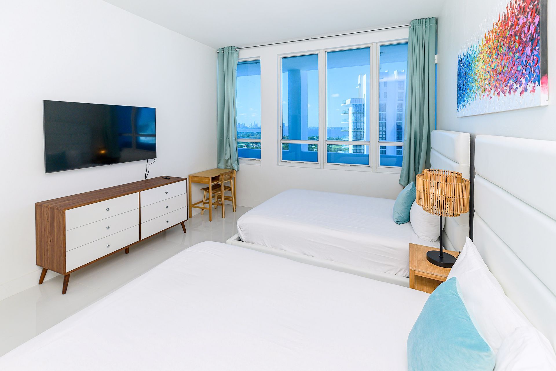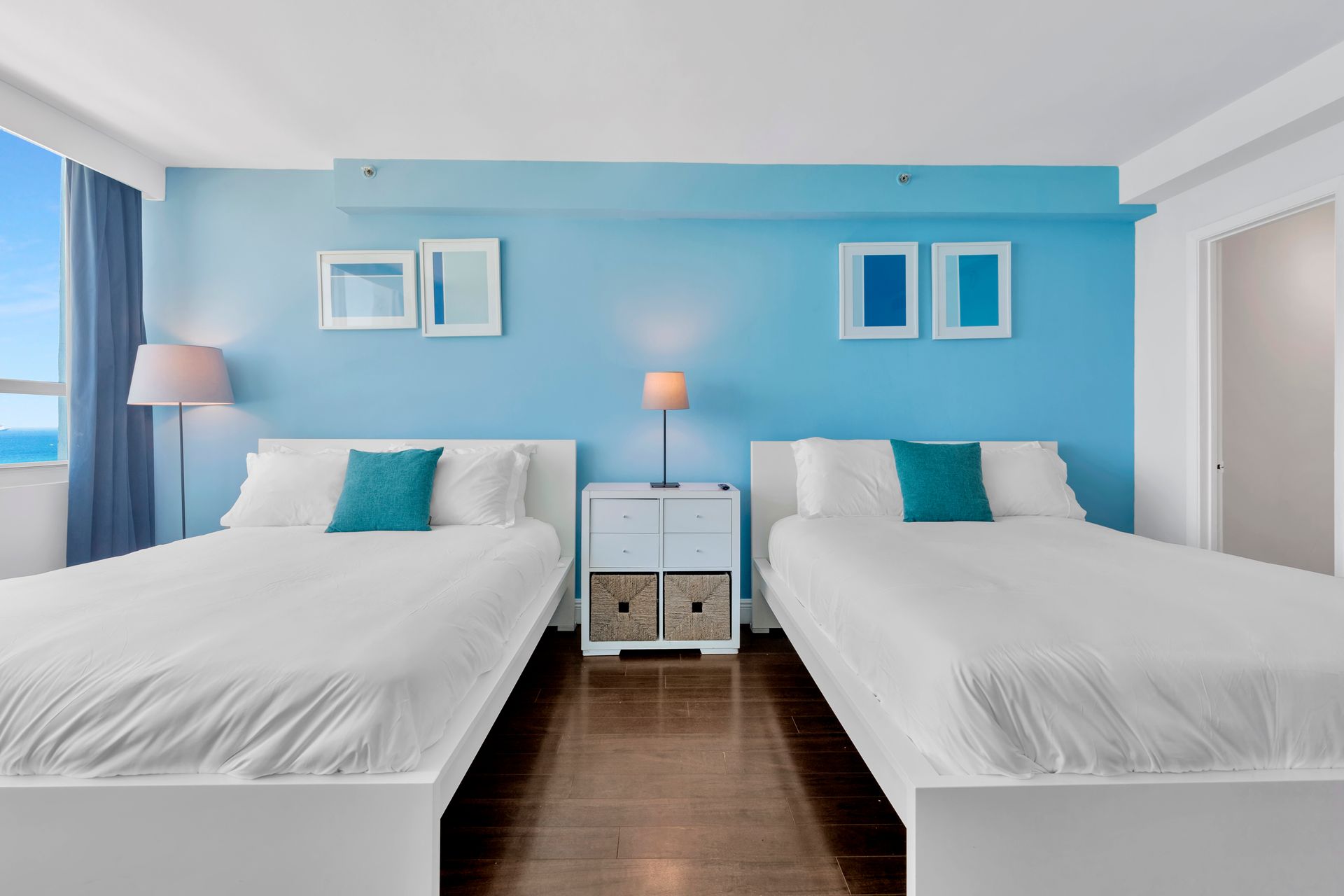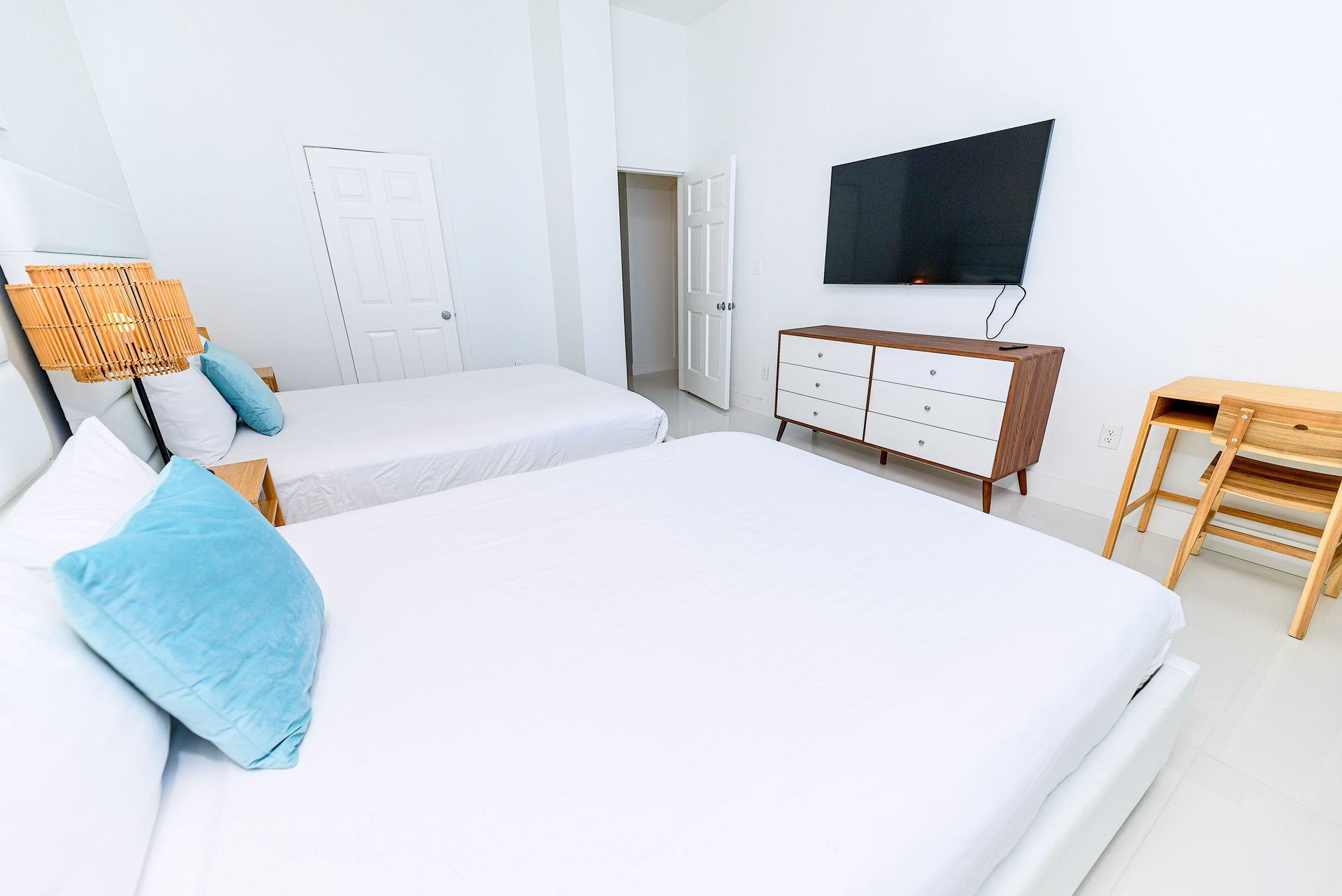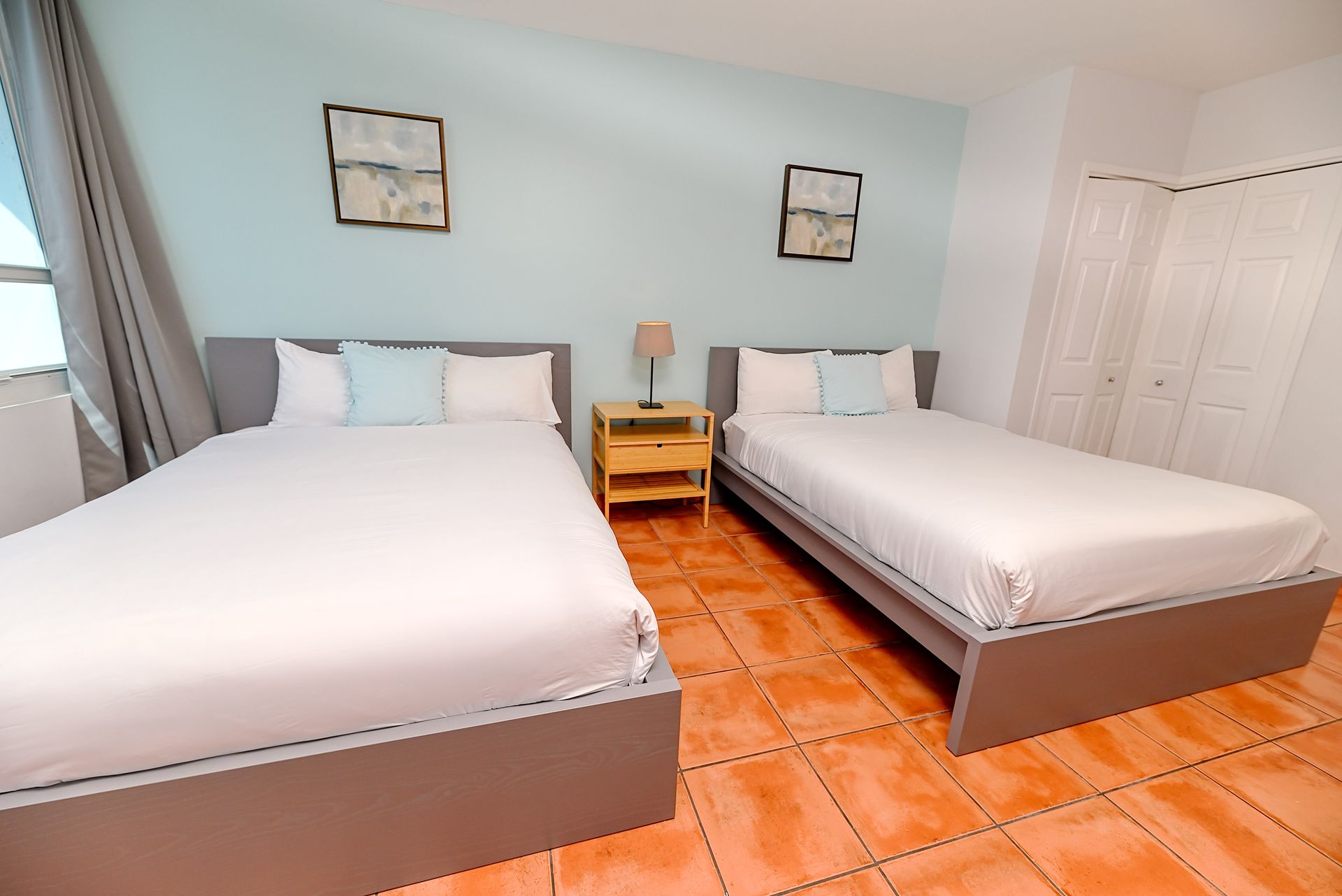 Camas: 1 King 1 cuna en el primer dormitorio, 2 camas Queen en el segundo dormitorio y 2 camas Twin en el tercer dormitorio