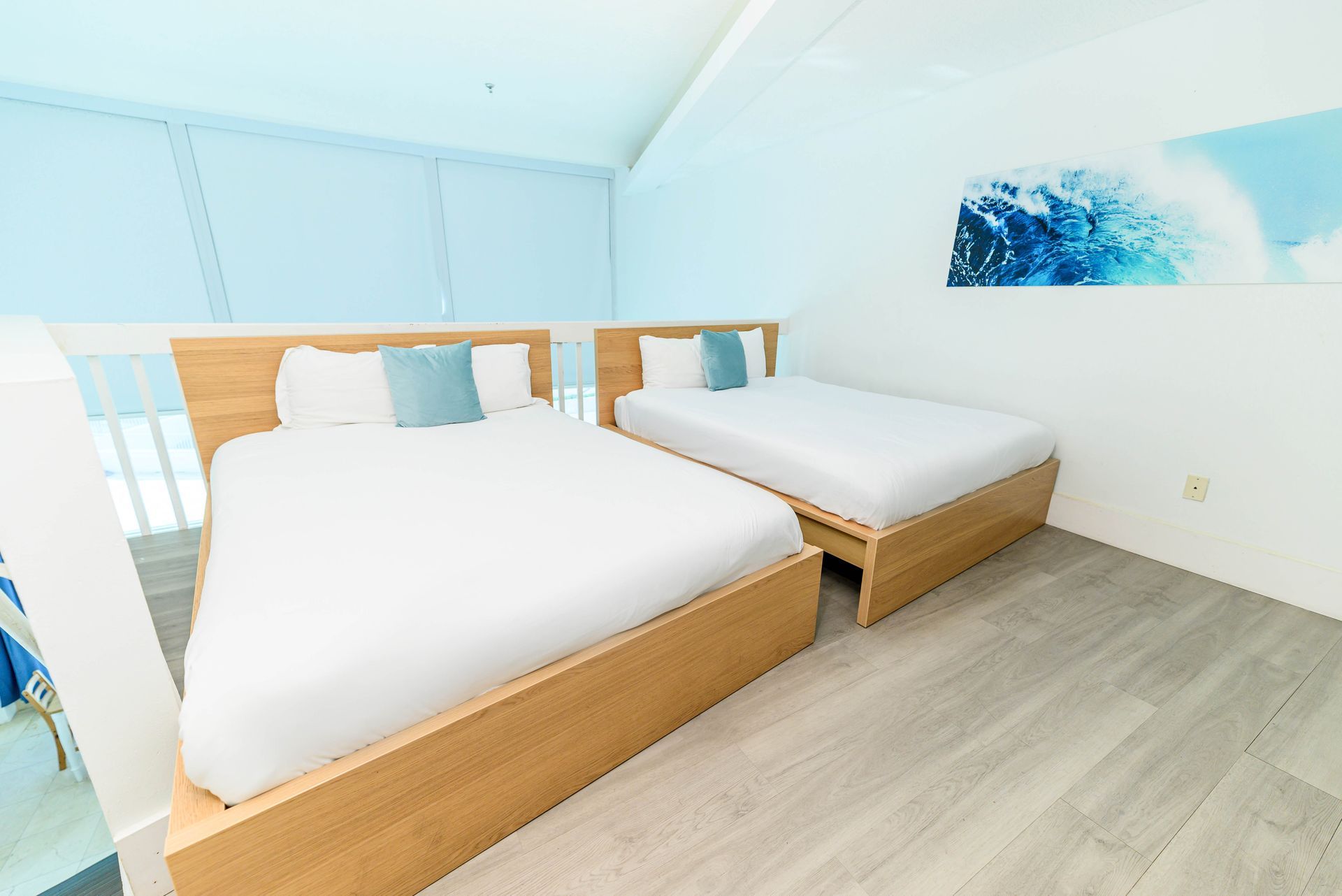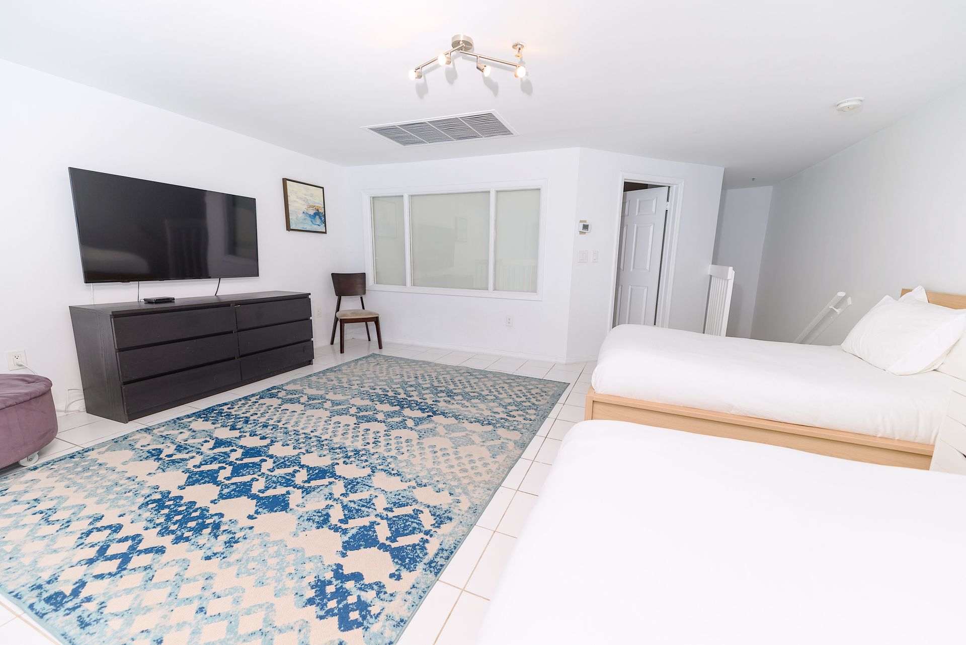 Camas: 1 cama King en el área del loft y 2 camas Full en la sala