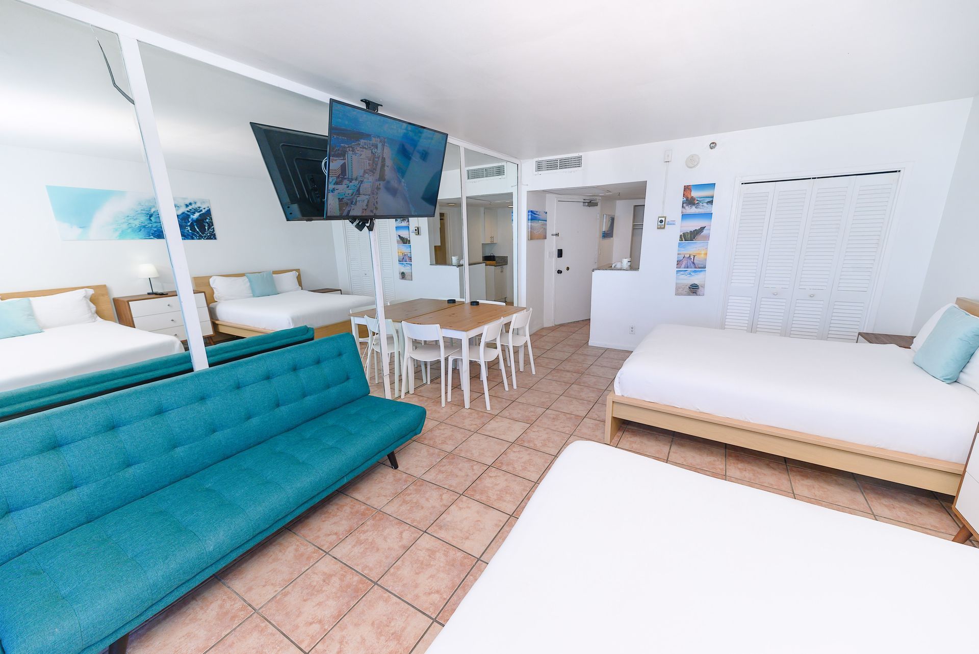 Camas: 2 Camas Queens + 1 Sofá Cama