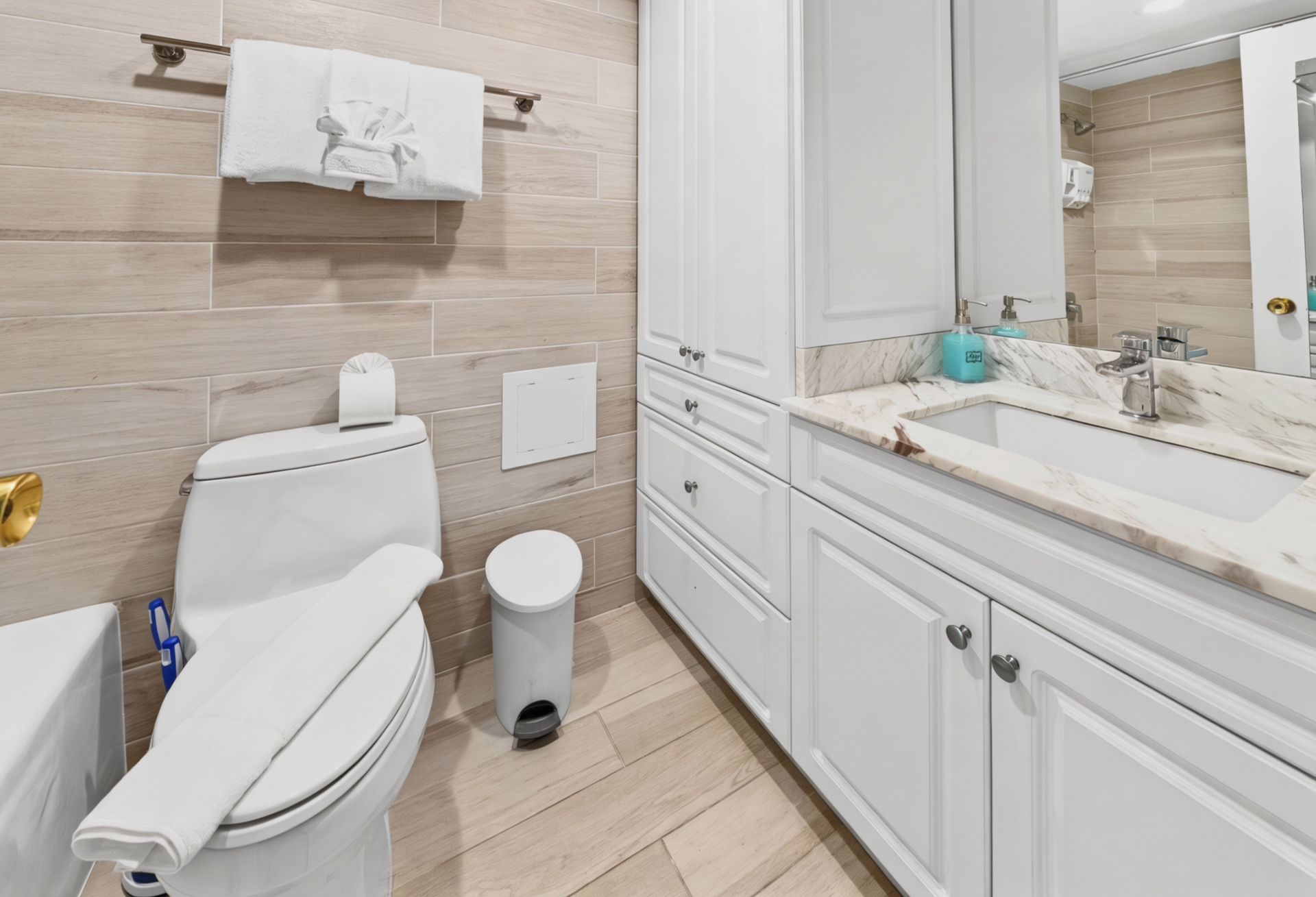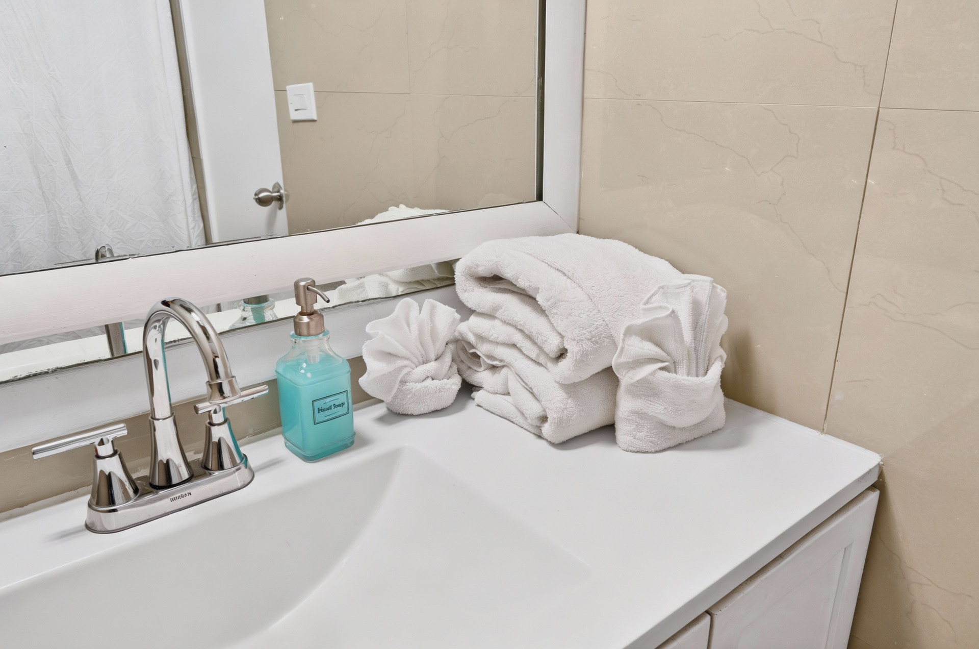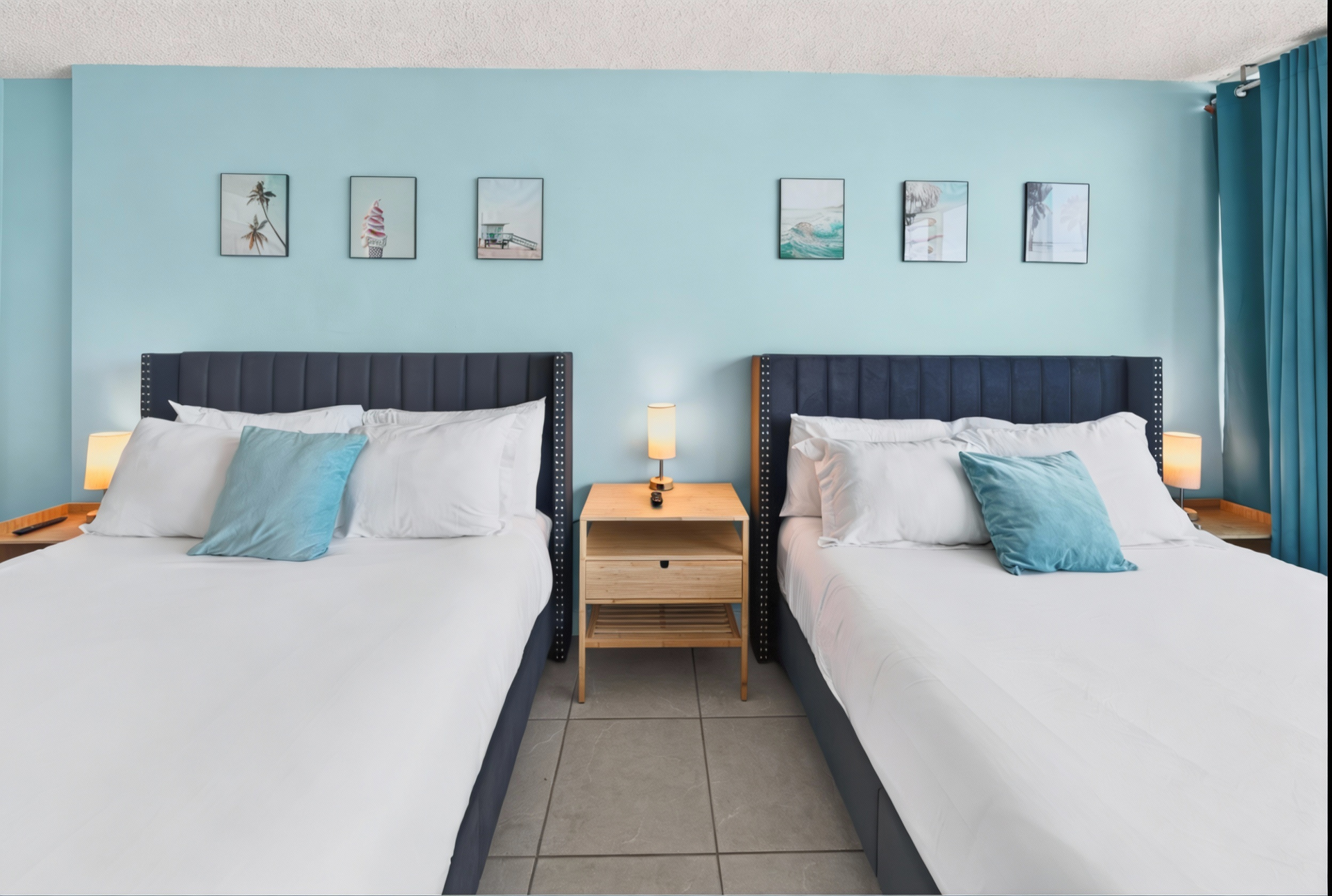 Beds: 1 King + 1 Crib in the first bedroom, 2 Queen beds in the second bedroom and 2 Twin beds in the third bedroom