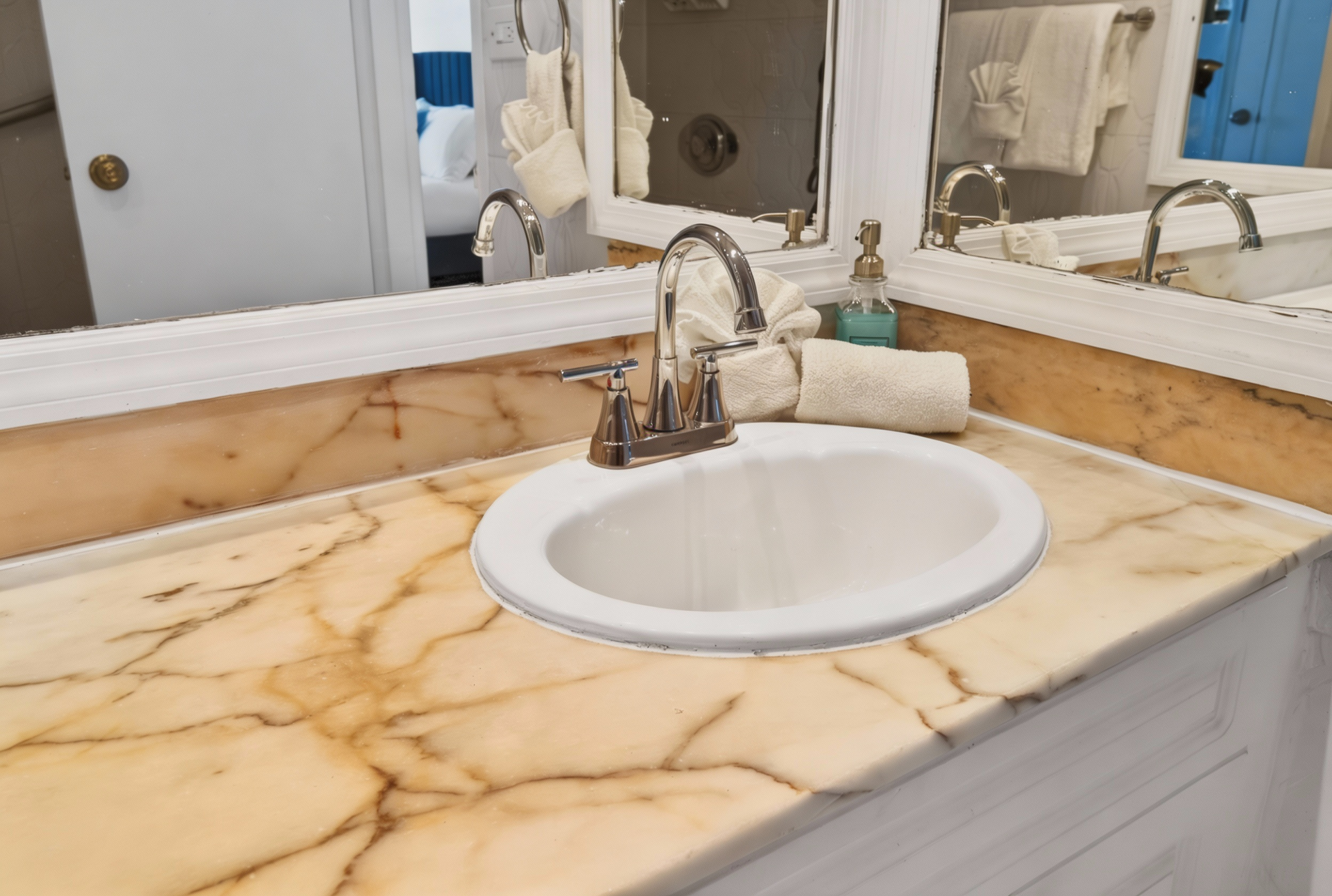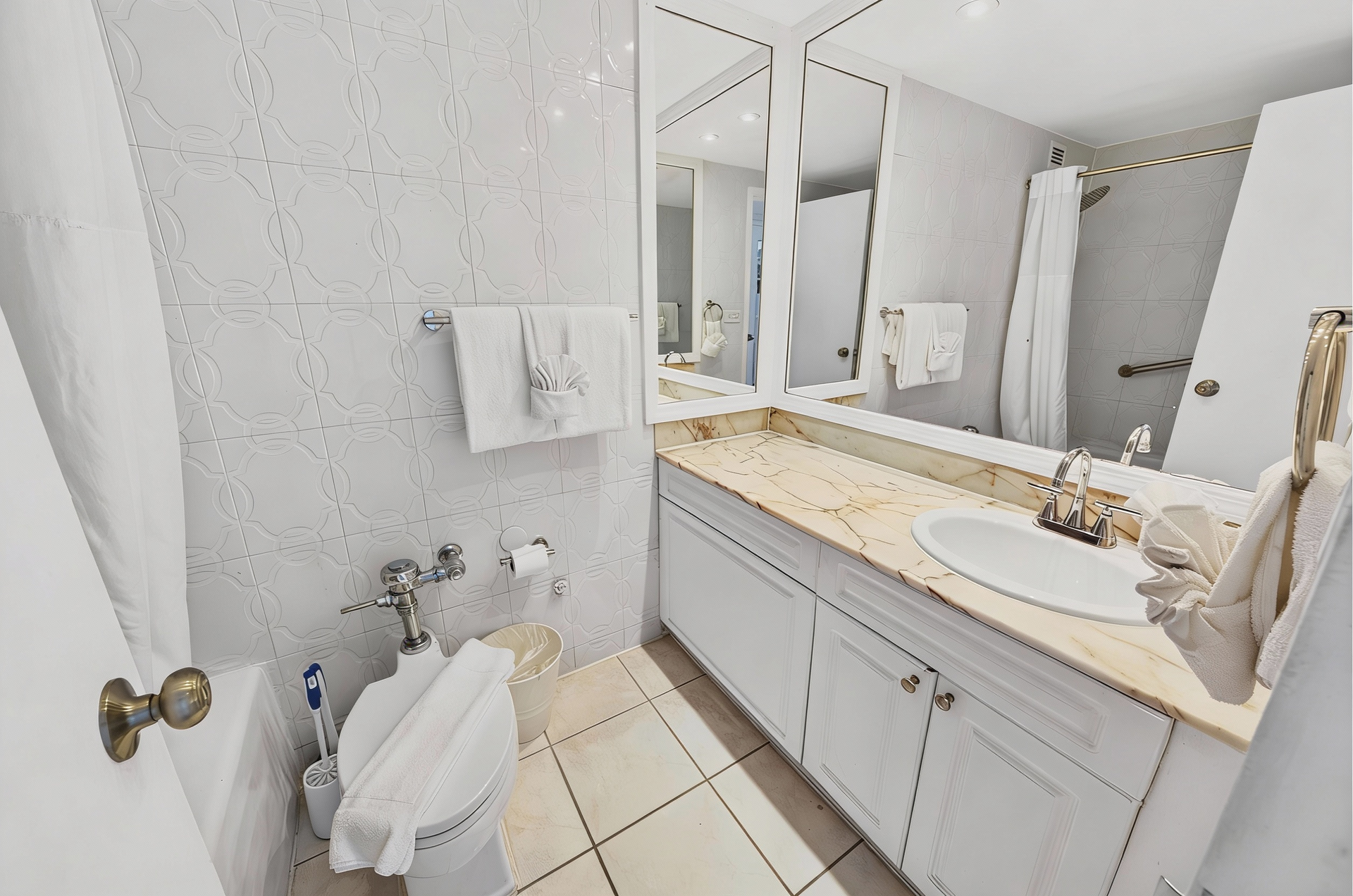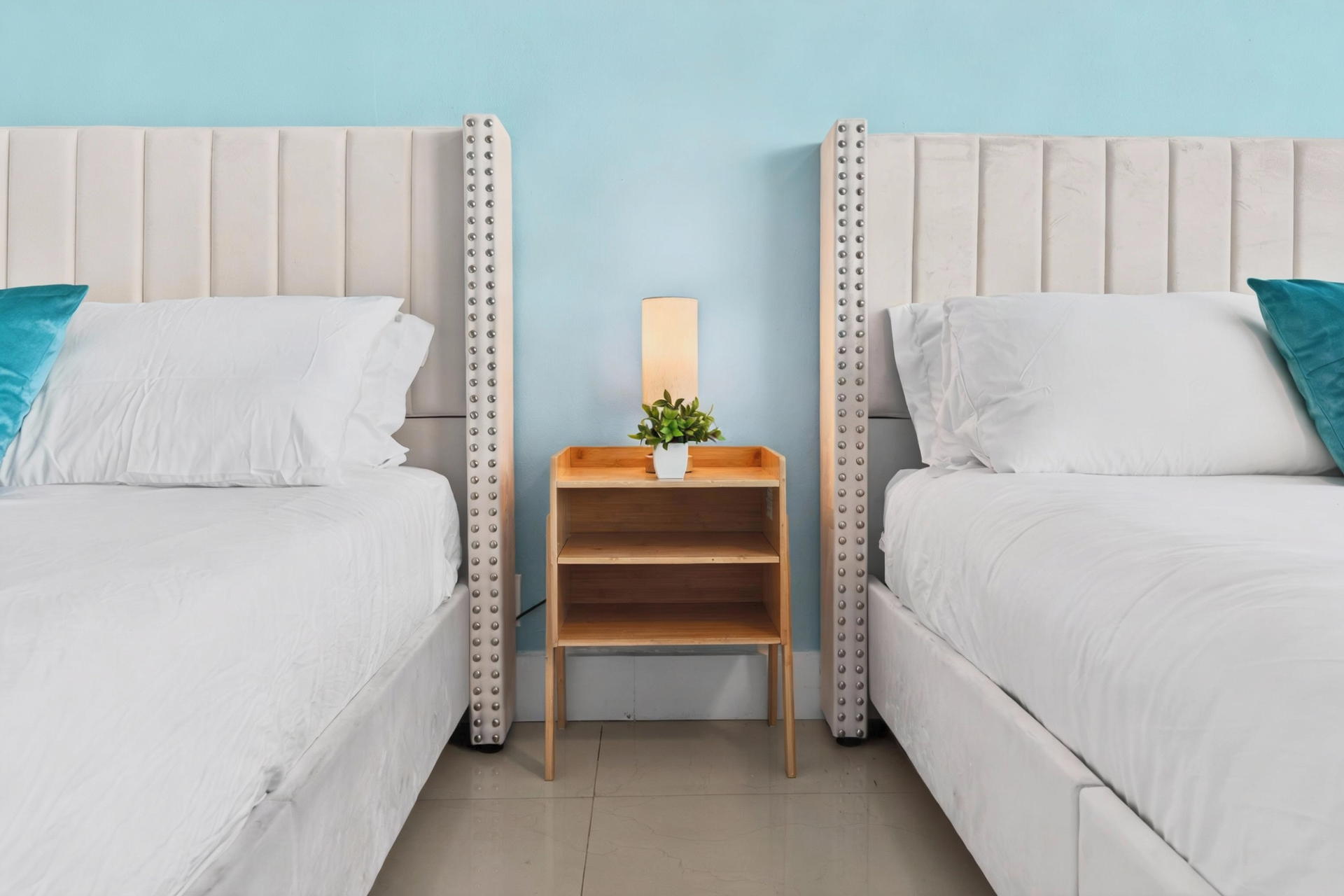 Beds: 1 King + 1 Crib in the first bedroom, 2 Queen beds in the second bedroom and 2 Twin beds in the third bedroom